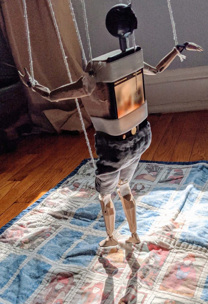 Prisoner’s Cinema. I want to give the viewer a sense of being stuck in a body that’s not connected to their sentience. The viewer sees through the first-person point of view of a marionette as it comes to terms with topics like grasping and aversion, whimsy and austerity. Shot in 360 video.
